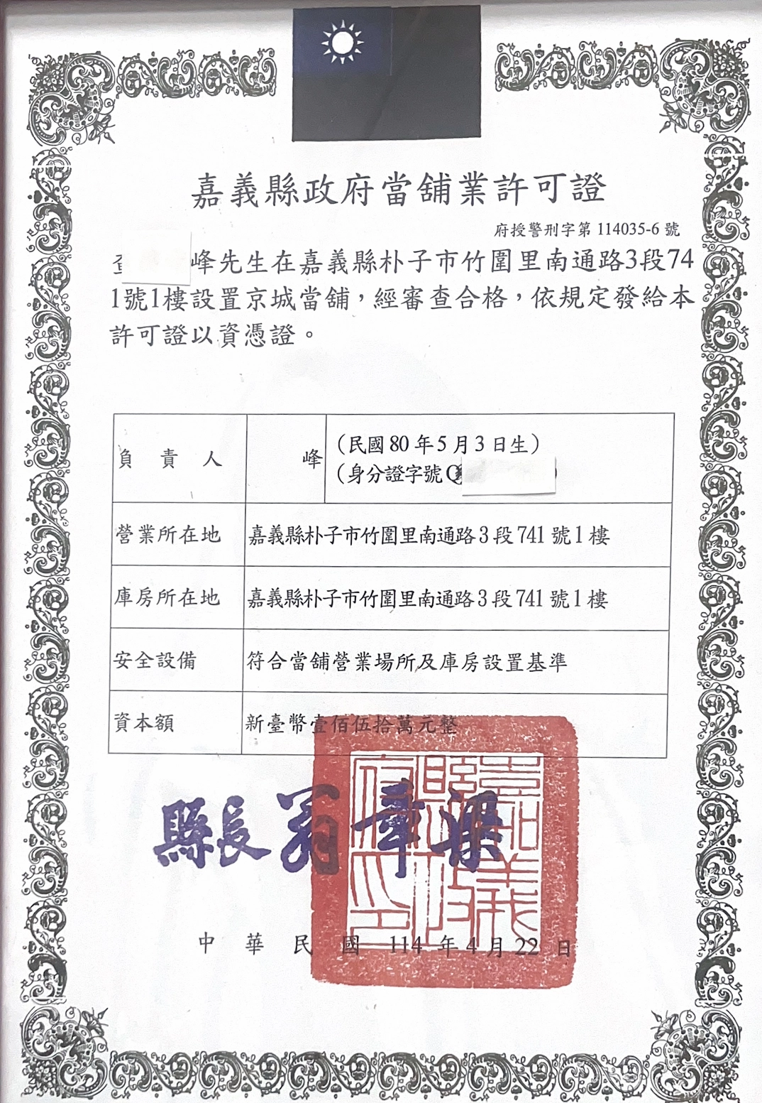 我們擁有專業評估、透明契約與即時撥款的完整服務流程:1. 政府立案、合法經營: 具備警察局核發的營業許可證,嚴格遵守《當舖業法》規範。