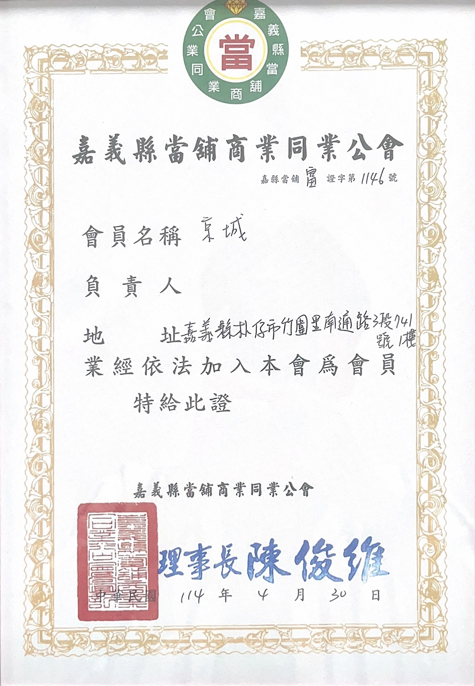 3. 公會認證: 身為當地當舖商業同業公會會員,服務流程有保障。